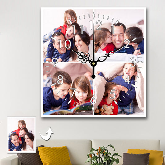 Personalized Photo Square Custom Wall Clock With 4 Photos