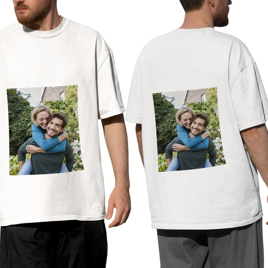 Customizable Unisex Cotton T-Shirt, Double-Sided Photo Print & Text