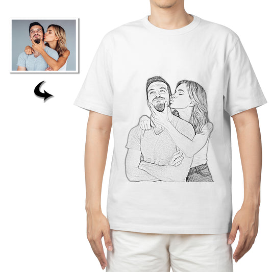 Personalized Unisex T-Shirt, Custom Cotton, Short Sleeve, Photo Sketch Design