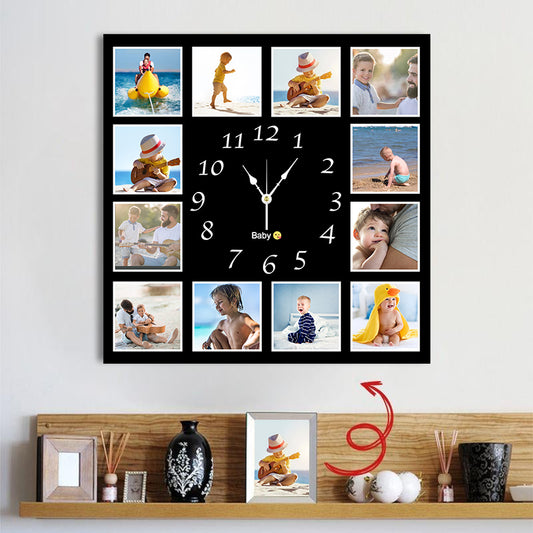 12pcs Photo and Text Square Wall Clock Personalized Clock