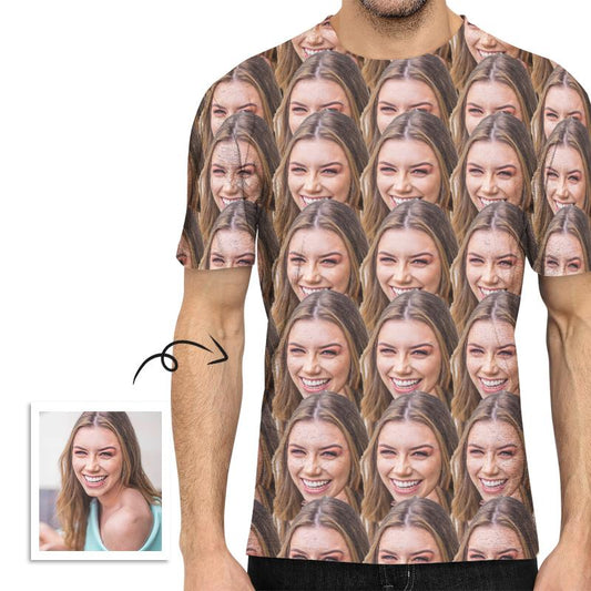 Unisex Double-Sided Custom Photo T-Shirt, Short Sleeve, Face Mash Design