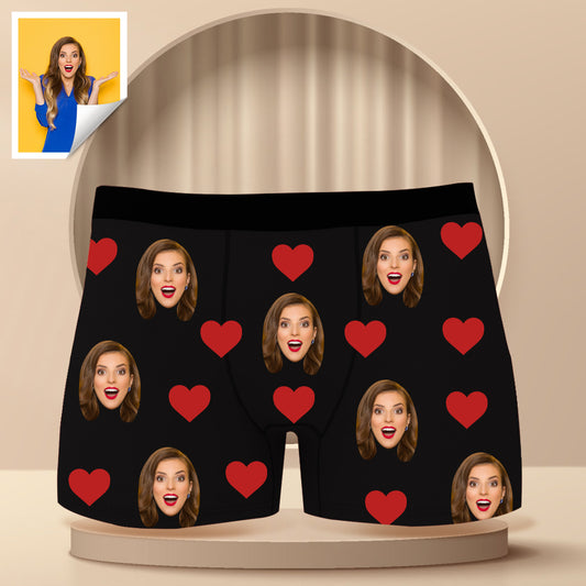 Custom Boxer with Photo Mens Underwear with Face and Heart and Texts