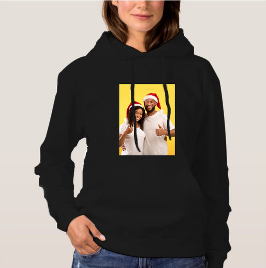 Double Side Print Essential Hoodie: Unisex Black Long Sleeve Custom Photo Sweatshirt for All