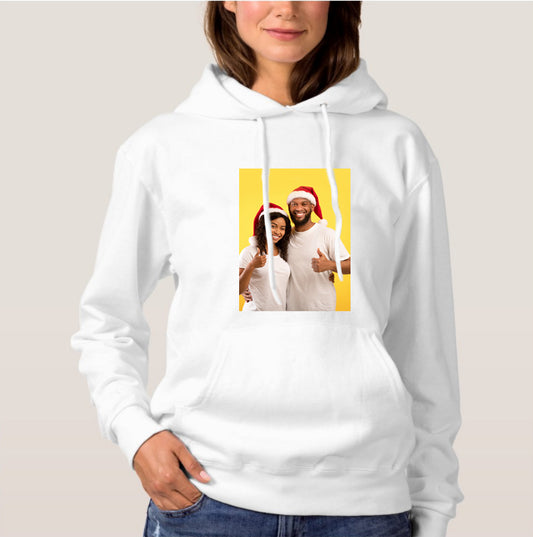 Double Side Print Essential Hoodie: All-in-One Unisex White Long Sleeve Custom Photo Sweatshirt