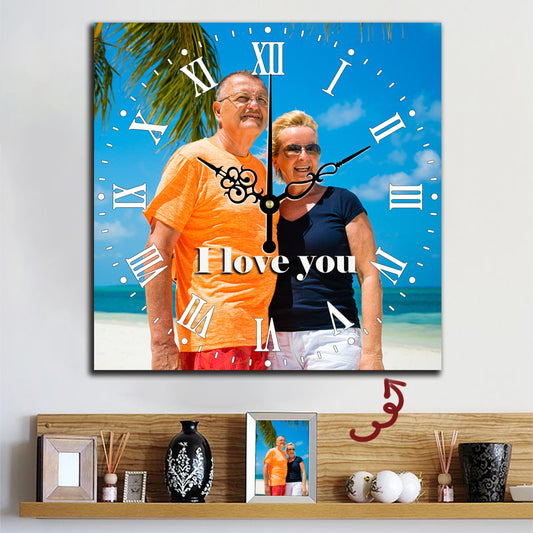 Custom Photo Square Clock - Personalized Wall Decor Gift