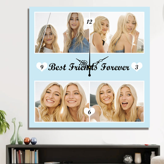 Personalized Photo Square Custom Wall Clock With 4 Photos