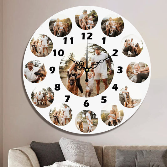 Custom Photo Collage Wall Clock - Personalized Picture Clock for Home Decor