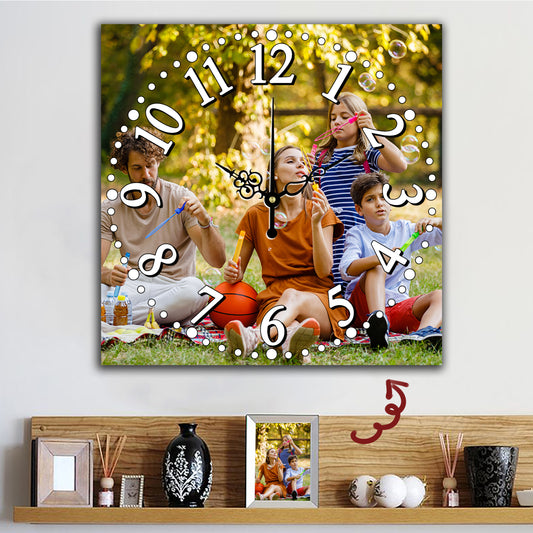 Custom Photo Square Clock - Personalized Wall Decor Gift