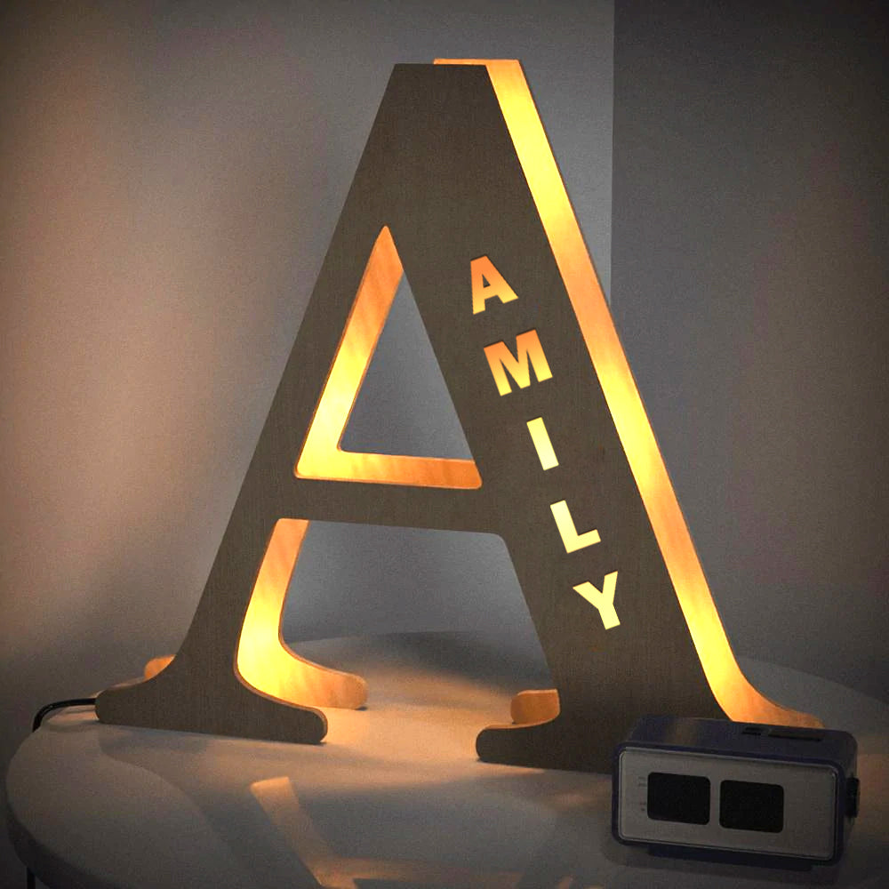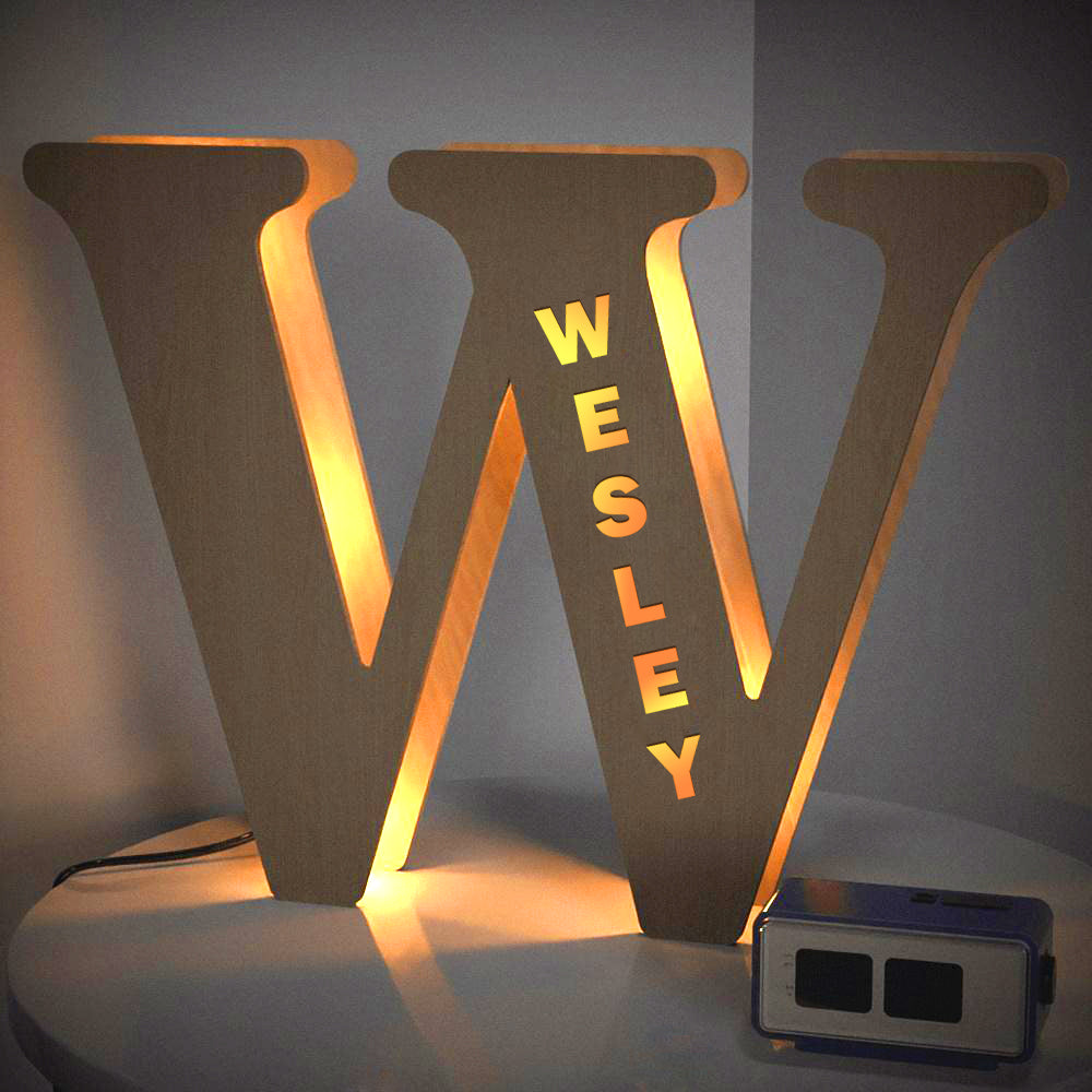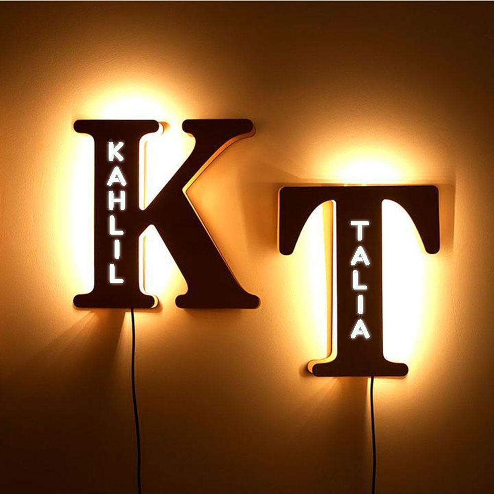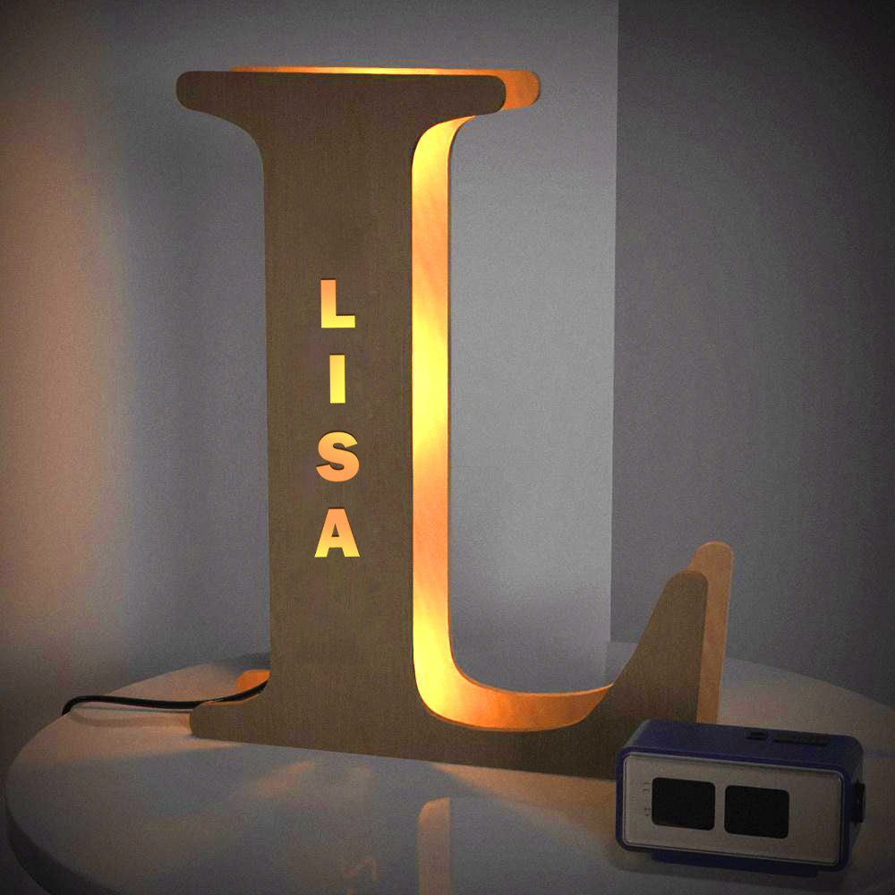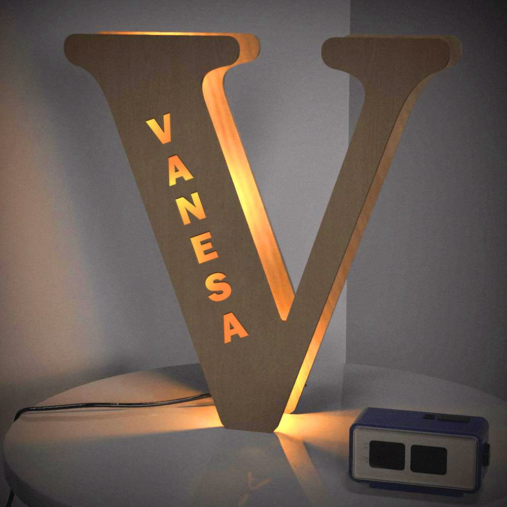- This lovely and creative initial lamp features your name in cutouts and can be attached to the wall.