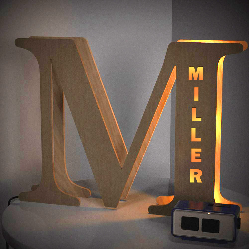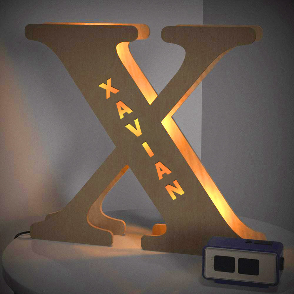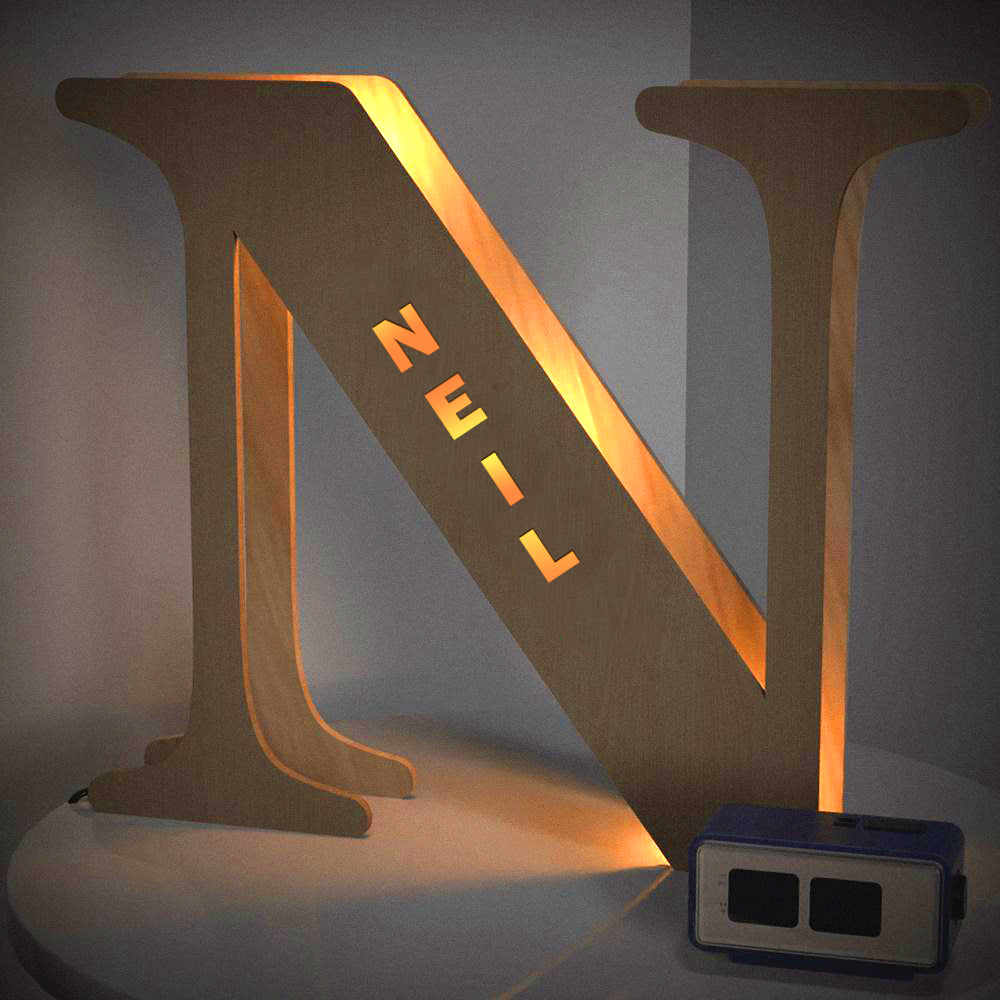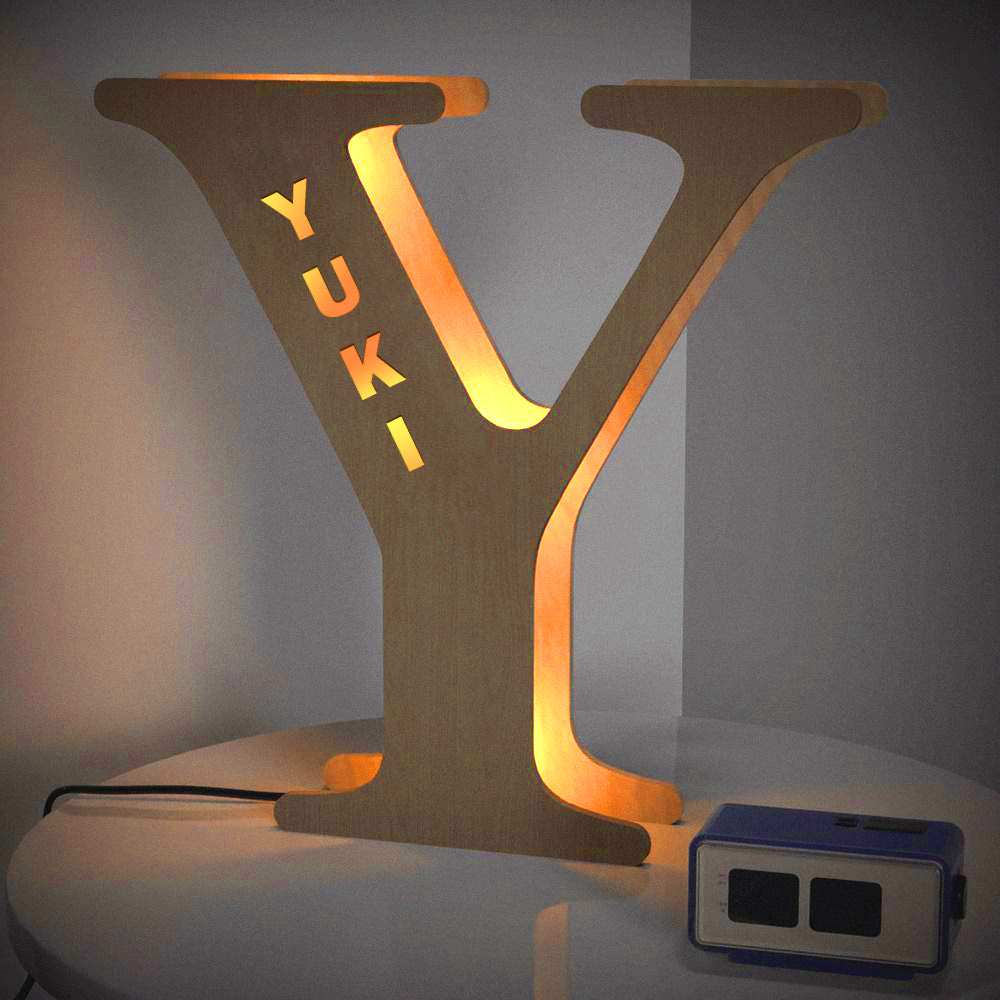 - This lovely and creative initial lamp features your name in cutouts and can be attached to the wall.