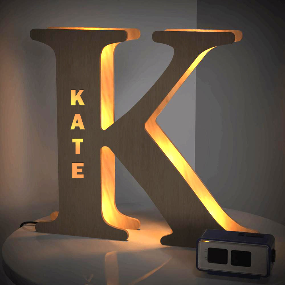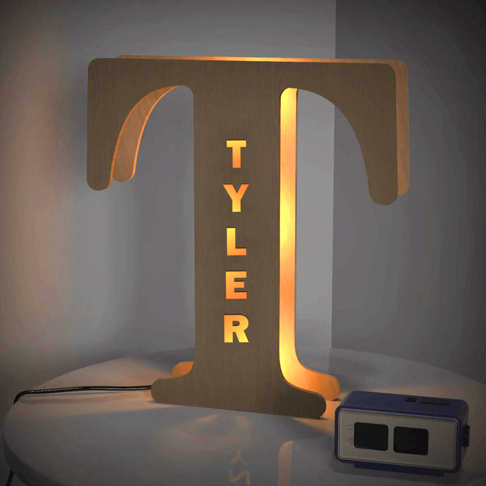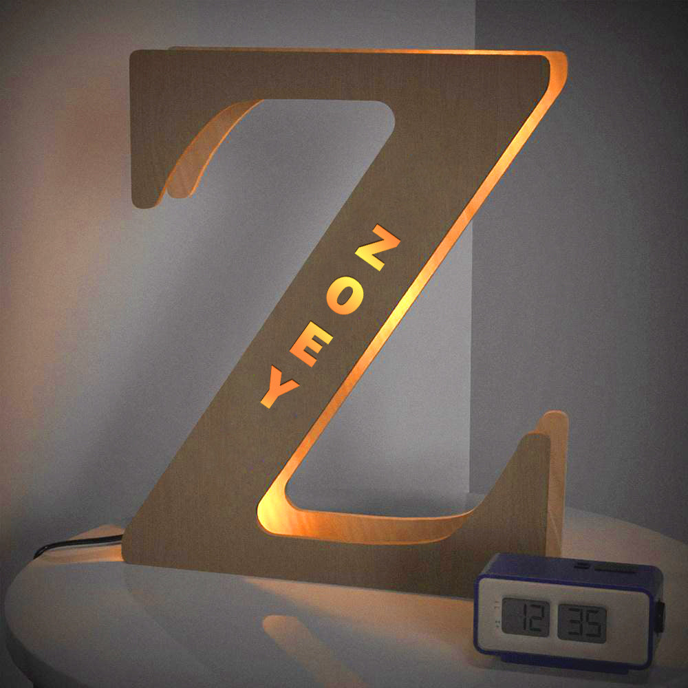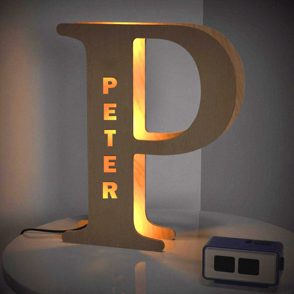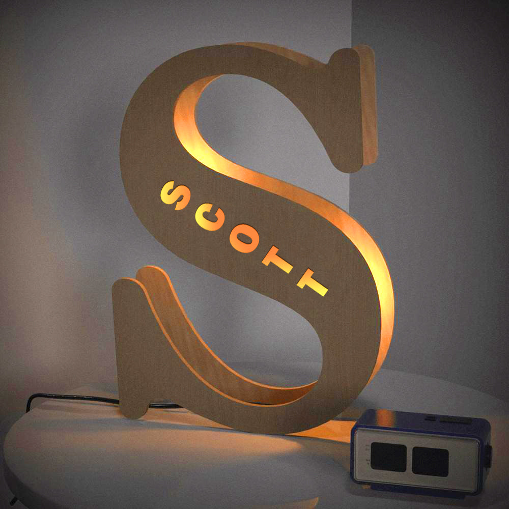 - This lovely and creative initial lamp features your name in cutouts and can be attached to the wall.