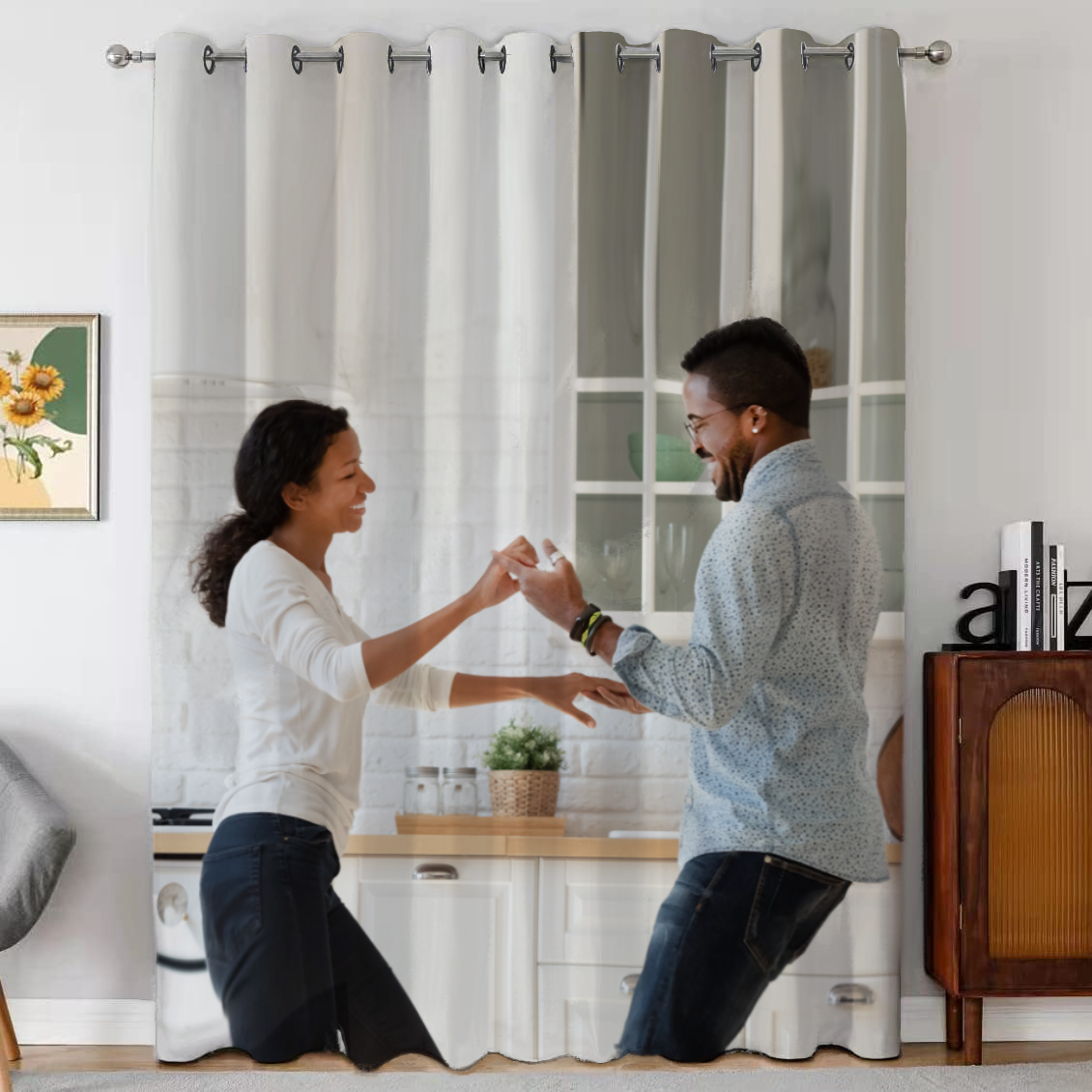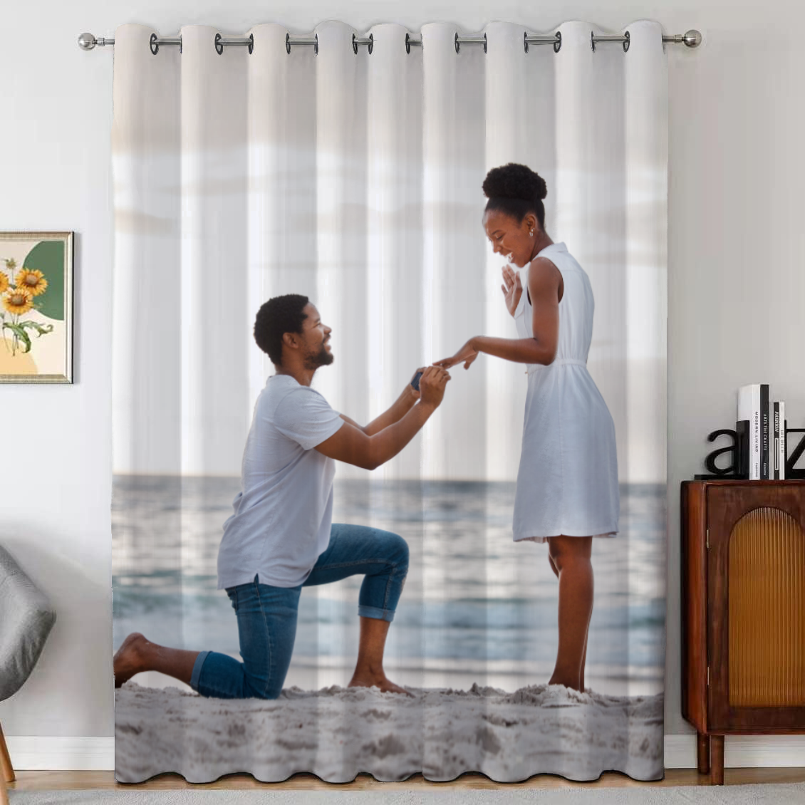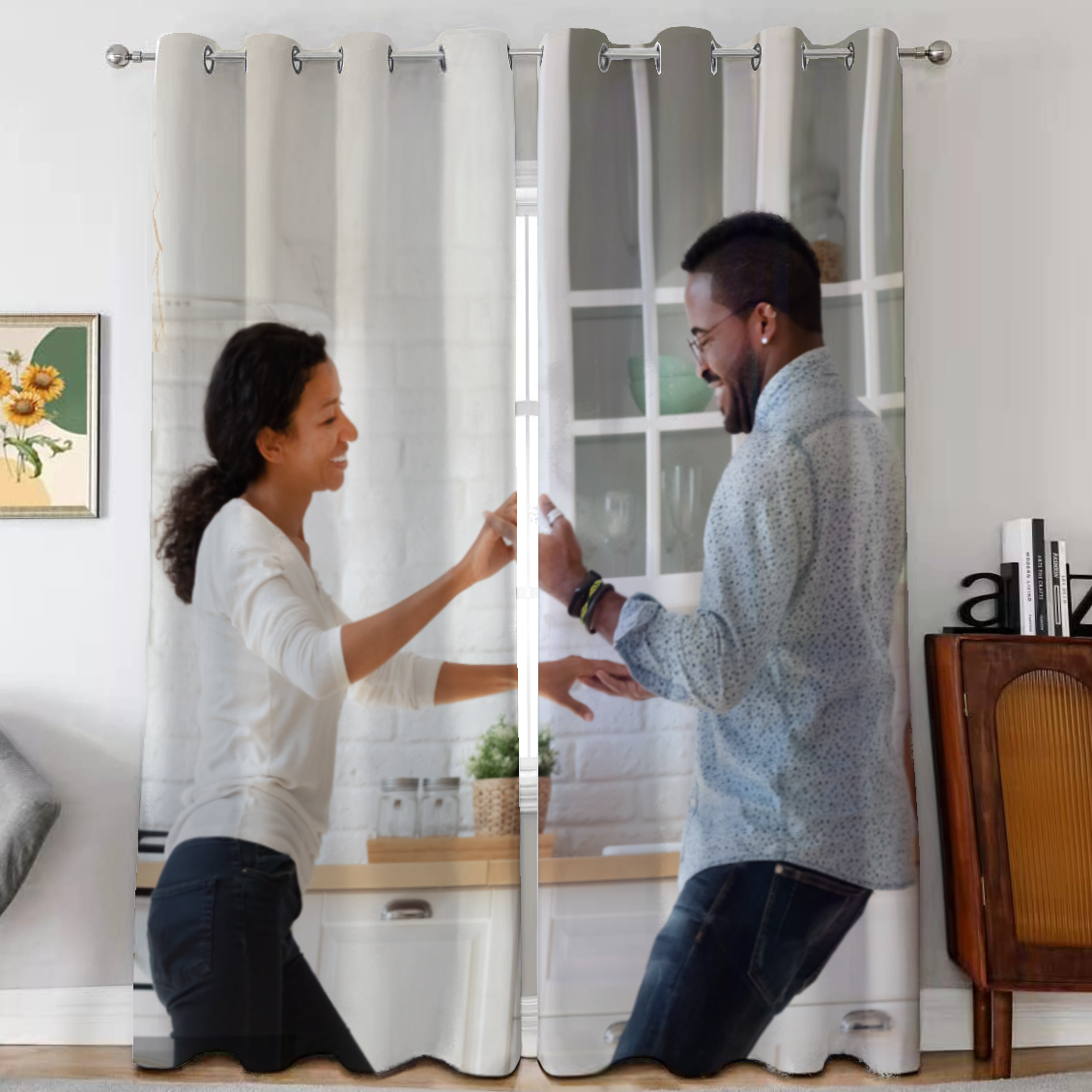 · Specification:Our curtains are of perforated style, suitable for Roman rods. There are two ways to open it. One is folio, two curtains for a set. Your design will be divided into two halves and printed on both sides respectively. Another way to open the curtain is to pull the side, a whole curtain for a set, your design will be printed on the whole curtain.