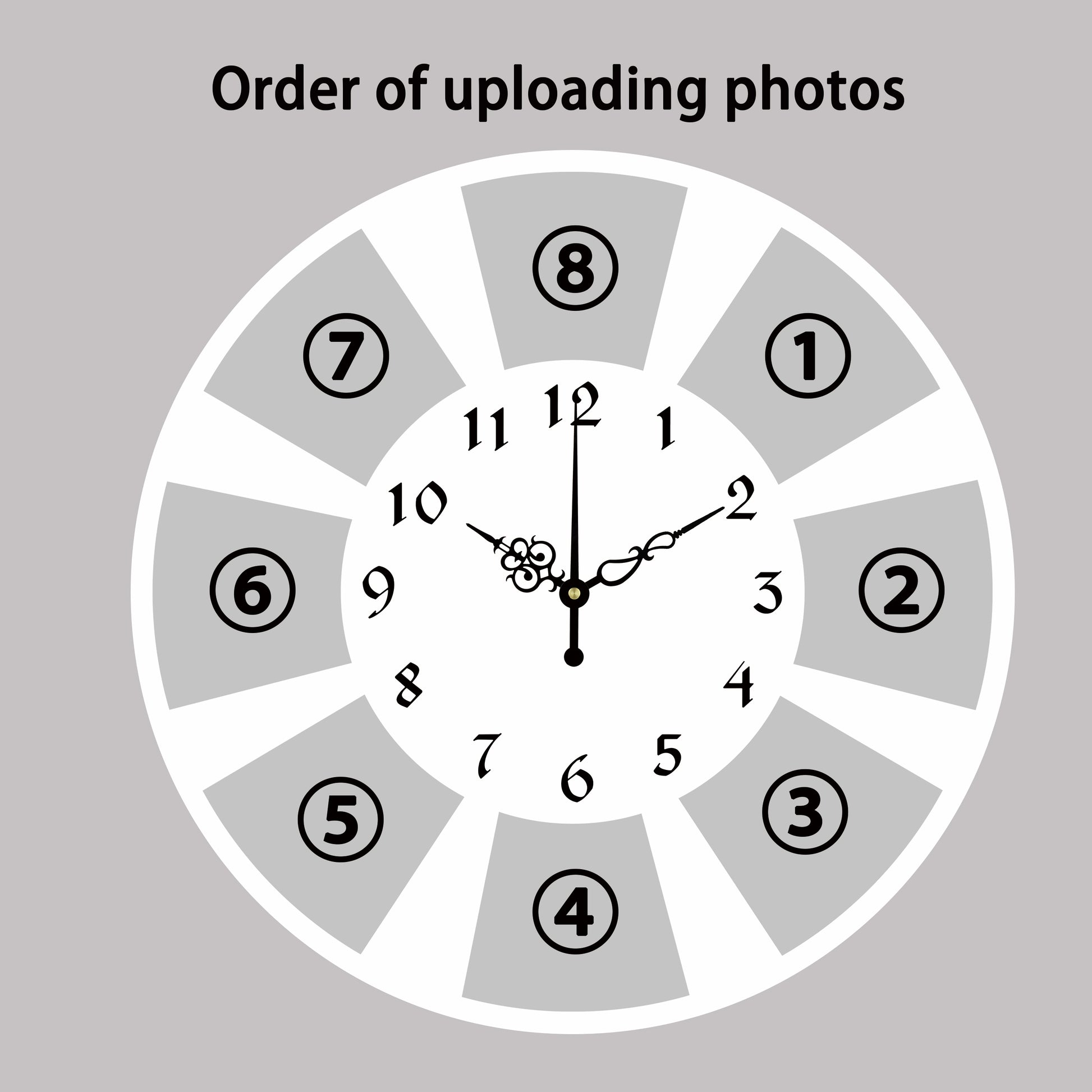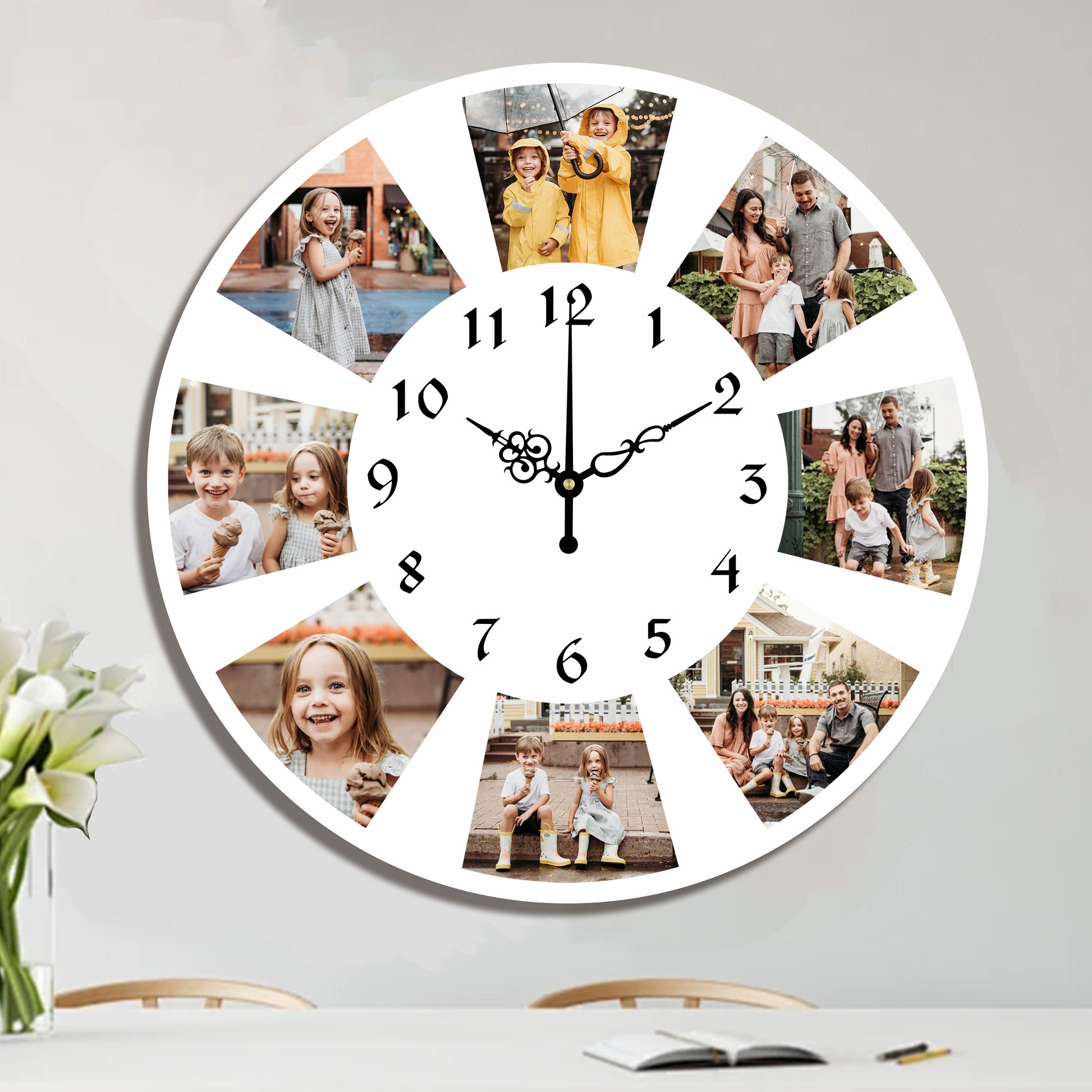 Create a personalized photo wall clock that captures your favorite memories! Design your own unique and attractive custom clock with images. High-quality materials ensure durability, while the precise and silent quartz movement guarantees accurate timekeeping. Perfect for home decor or as a thoughtful gift for any occasion. Customize your clock with your photos and text to create a truly one-of-a-kind piece.