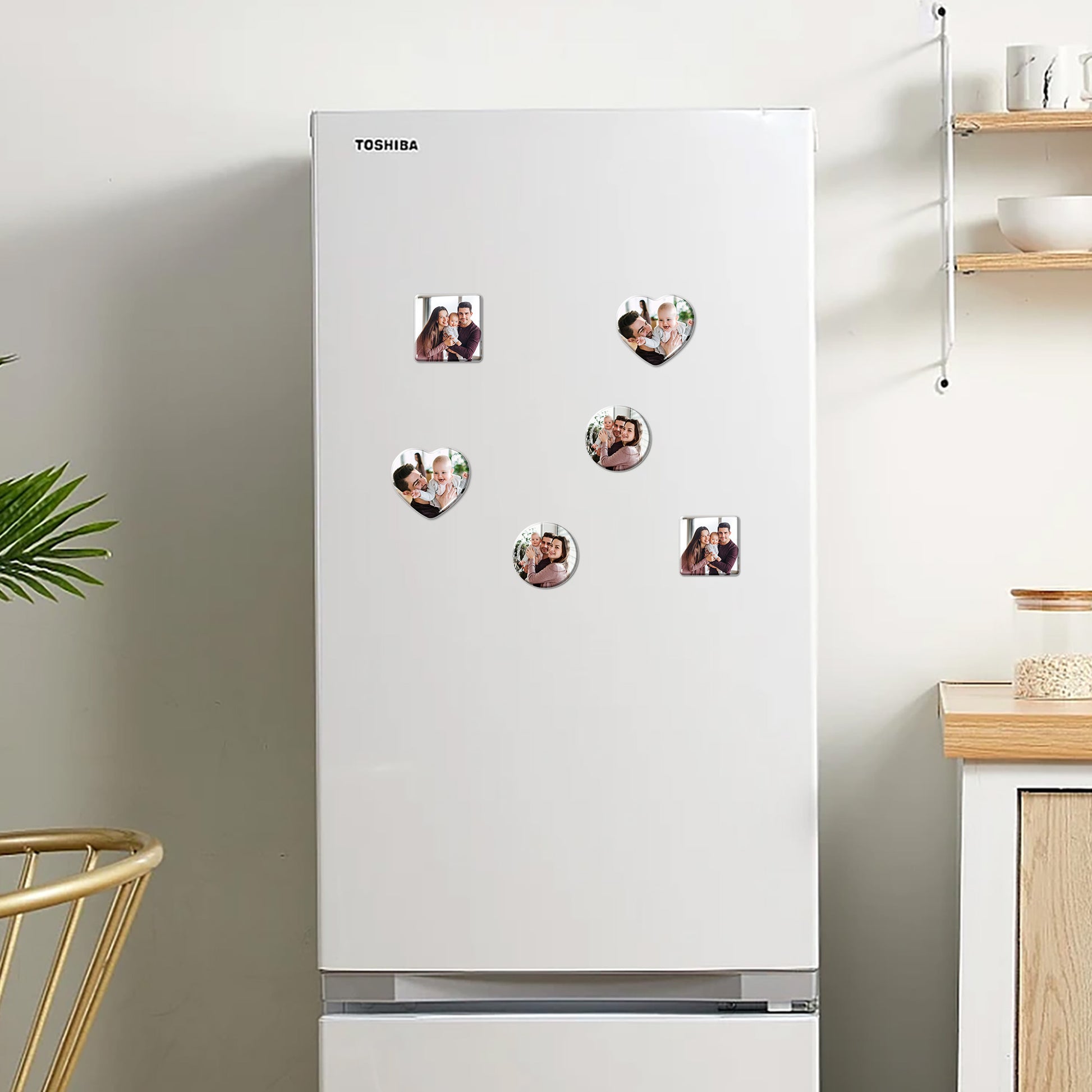 🔸PERSONALIZED FRIDGE MAGNETS: This creative magnets for fridge can be personalized with any pictures/photos, and completely designed by you own, which is fun, cute, unique and interesting.It's a great home decoration and keepsake.