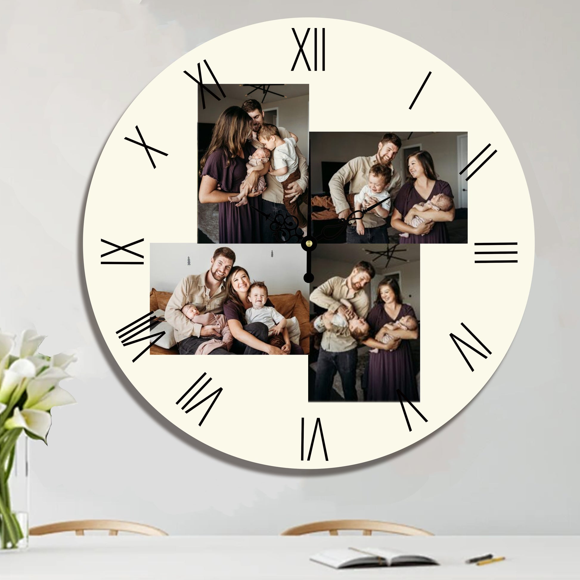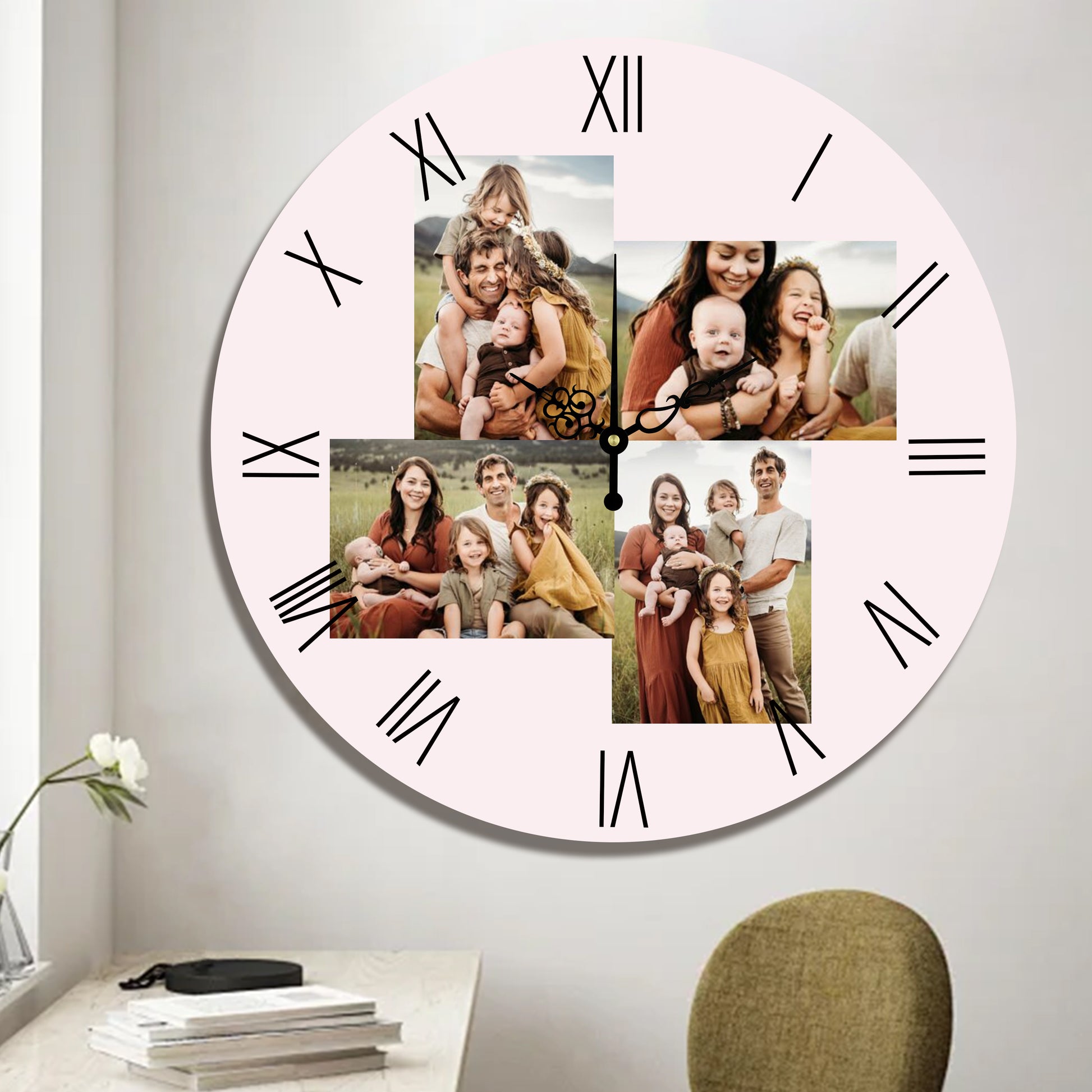 Customizable 4pc Round Photo Clock - Perfect Gift for Any Occasion