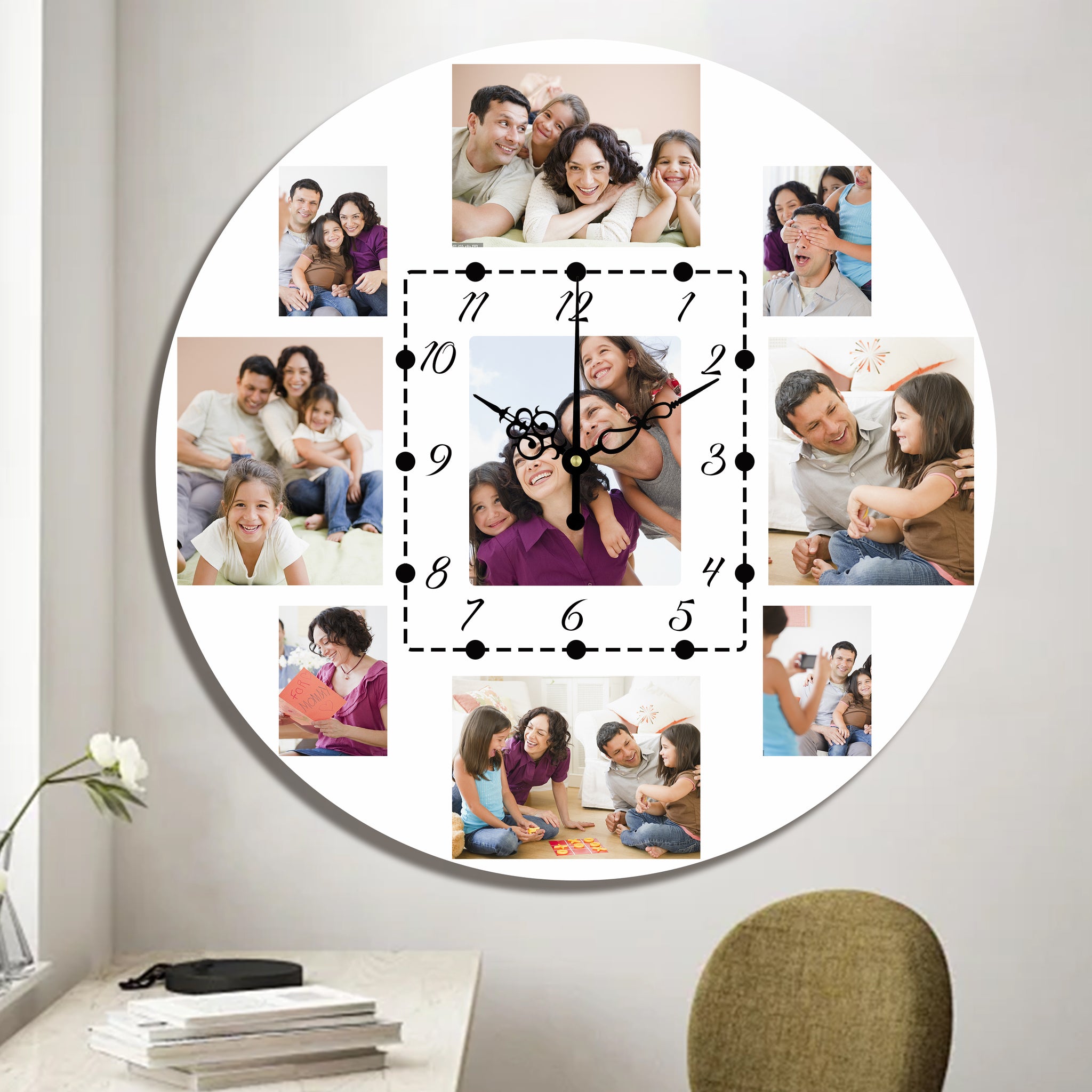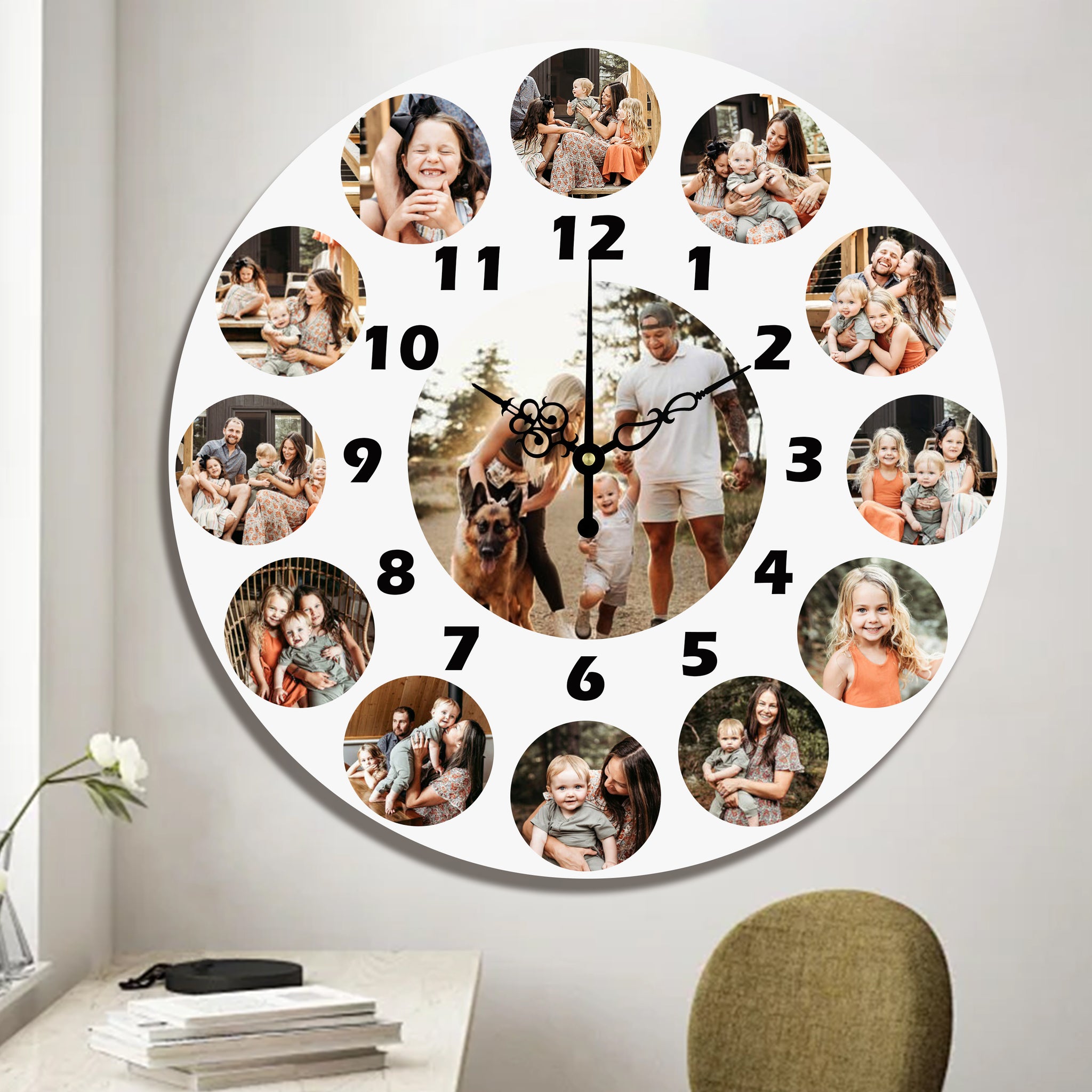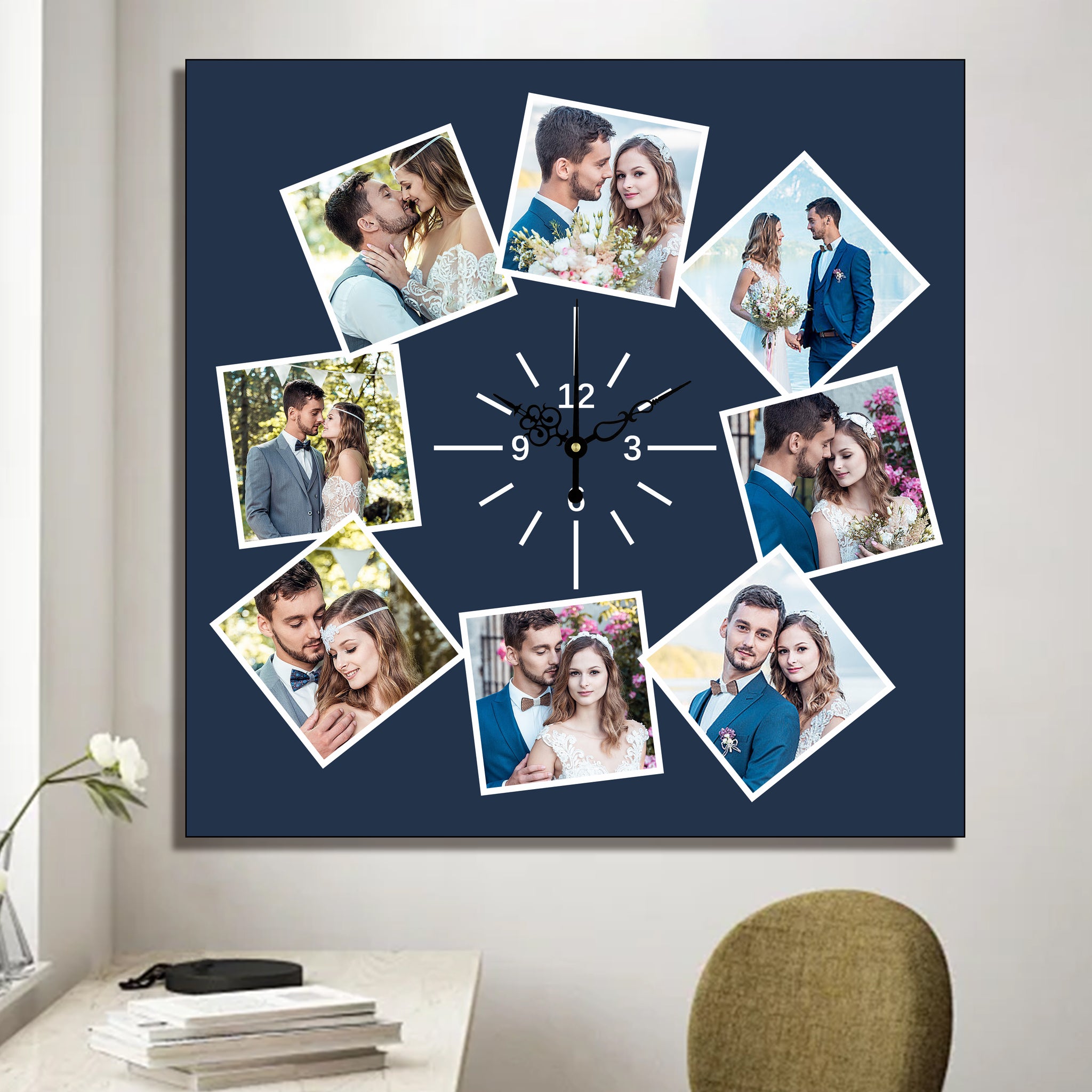 Create a personalized photo wall clock that captures your favorite memories! Design your own unique and attractive custom clock with images. High-quality materials ensure durability, while the precise and silent quartz movement guarantees accurate timekeeping. Perfect for home decor or as a thoughtful gift for any occasion. Customize your clock with your photos and text to create a truly one-of-a-kind piece.