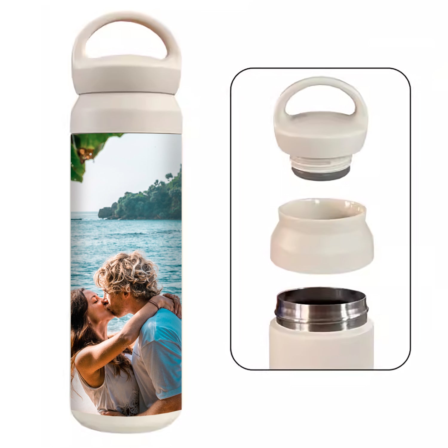 Personalized Photo Stainless Steel Tumbler - Thermos Cup with Handle